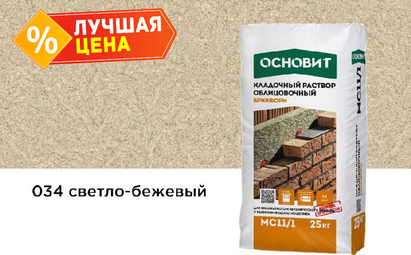 Цветной кладочный раствор ОСНОВИТ БРИКФОРМ МС11/1 светло-бежевый 034, 25 кг