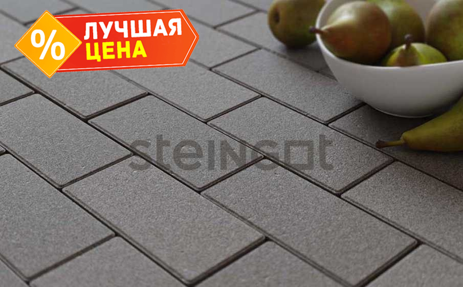 Плитка тротуарная Steingot Моно, Прямоугольник, с фаской 1,5x1,5, серый, 200x100x40 мм